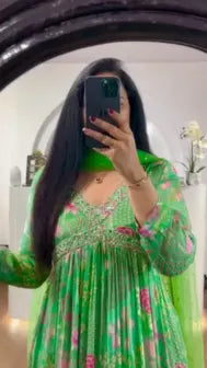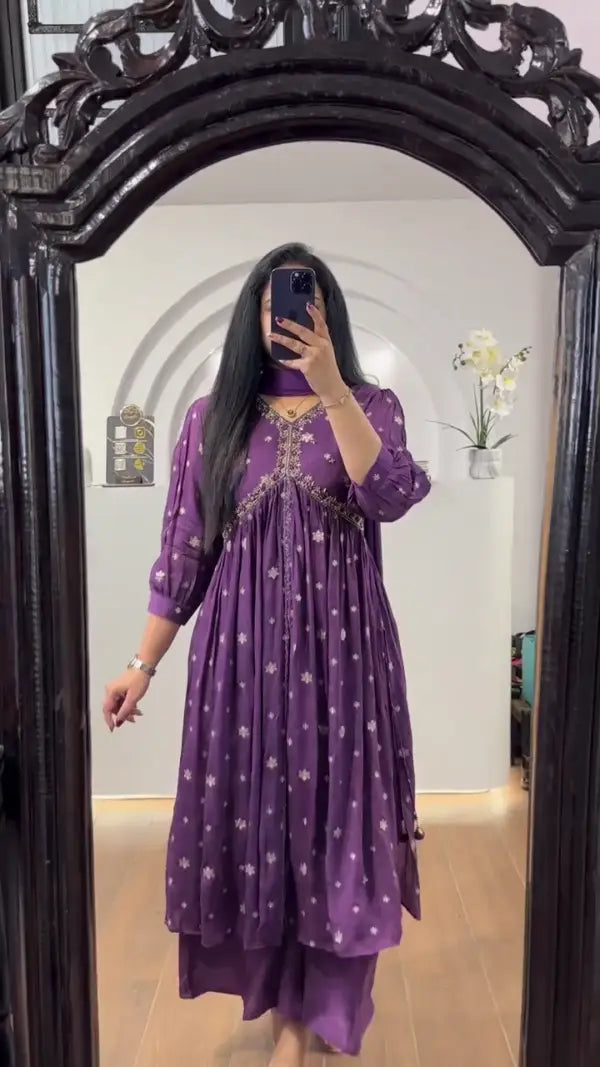 Ideal for weddings, engagements, and cultural celebrations, this Anarkali suit combines comfort, elegance, and tradition. Style it with statement jewelry for a glamorous finish, or let its embroidery and flowy design shine on their own.
