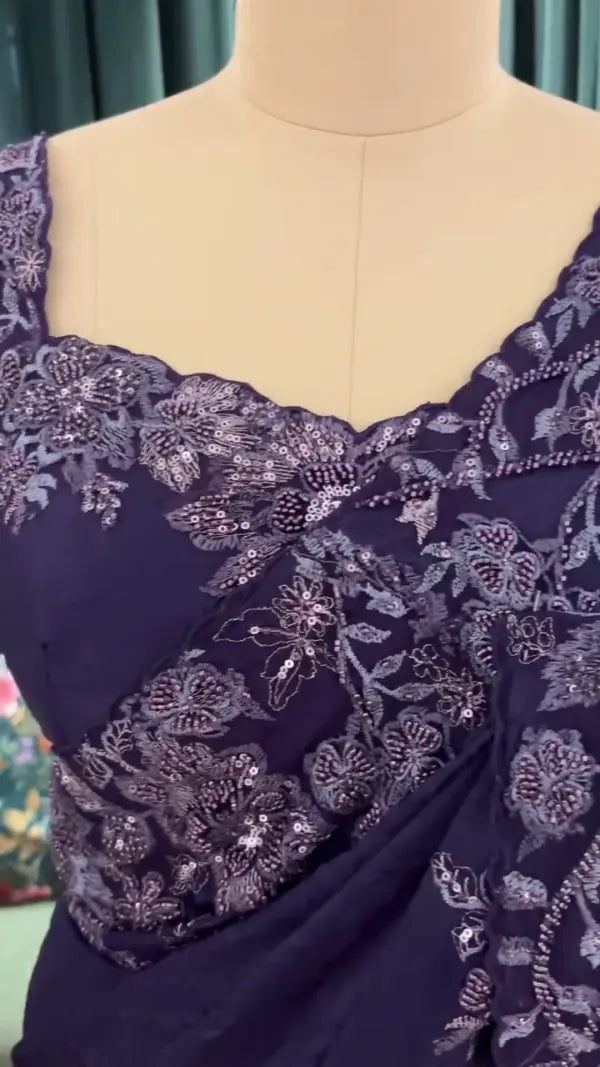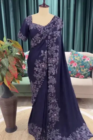 Step into sophistication with this rich navy blue saree, a color that never goes out of style. Its deep, regal tone makes it the perfect choice for weddings, receptions, and festive occasions.