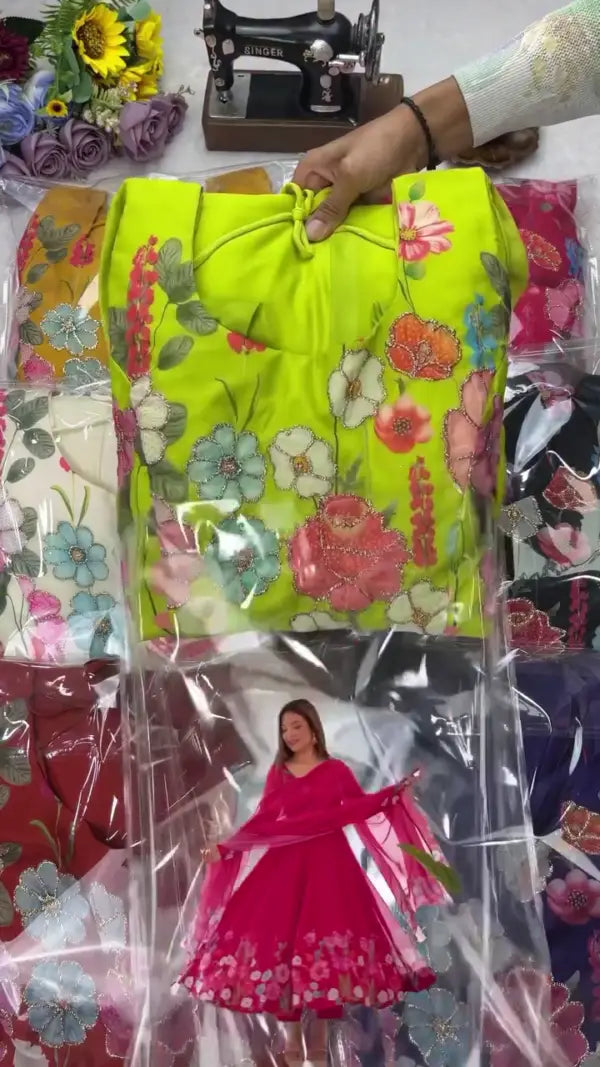 Showcases beautifully designed floral patterns with vibrant colors that add a touch of femininity and freshness to the traditional Anarkali kurti silhouette. Each print is intricately crafted to provide a visually appealing and stylish ethnic look.